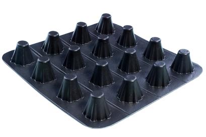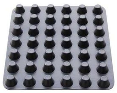 塑料排水板是由聚苯乙烯(HIPS)或者是聚乙烯(HDPE)為原料塑膠底板經過沖壓制成圓錐突臺或者加勁肋的凸點(或中空圓柱形多孔)而成,經過不斷的創(chuàng)新研發(fā)原料得到巨大提升和變更,現由聚氯乙烯(PVC)為原料壓制而成,抗壓強度和整體平整度得到大幅度的提升,幅寬有1~3米,長度有4~10米或者以上。圓錐突臺的頂面膠接一層過濾土工布,以阻止泥土微粒通過,從而避免排水通道阻塞使孔道排水順暢。 傳統的排水方式使用磚石瓦塊作為導濾層、使用較多的鵝卵石或碎石作為濾水層、將水排到指定地點。而用排水板取代鵝卵石濾水層來排水則省時、省力又節(jié)能、節(jié)省投資、還能降低建筑物的荷載。良好的排水系統對土建的施工周期及構筑物的正常使用和壽命具有重要的作用。排水板與多孔滲水管組成一個有效的疏排水系統,圓柱形的多空排水板與土工布也組成一個排水系統,從而形成一個具有滲水、貯水和排水功能的系統。塑料排水板分卷材及片材二個系列,造型上采用特殊工藝將塑料板材壓出封閉凸起的柱狀殼體,形成凹凸狀膜,殼連續(xù),具有立體空間和一定支撐高度,邊沿加工生產時熱粘上丁基橡膠條,殼頂部覆蓋土工布過濾層,用于滲水、疏水、排水和蓄水的產品。又稱為:搭接粘膠排水板、排疏板、排水保護板、濾水板、塑料凹凸排水板、塑料夾層板。產品規(guī)格分為廣場綠化用和地下室用,有H20、H25規(guī)格供選用。主要分類施工中常用的排水板有:塑料排水板,蓄排水板,卷材排水板,防滲水排水板,復合排水板,立體排水板,片狀排水板等。