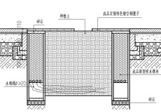 海綿城市生態(tài)樹池是指樹池的標高一般比路面低一些,用以收集、初步過濾雨水徑流。就行道樹而言,一系列連貫的樹池可以被設計成潛在的收水裝置,最大限度地發(fā)揮收集、過濾雨水徑流的作用。在一定程度上緩解道路積水問題,并且具有豐富城市路面綠化、增加城市生物多樣性的作用。