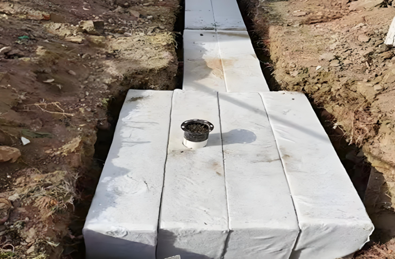 碳纖維雨水收集模塊一般采用塊狀,為了保持整體性,避免局部損壞,其塊狀外部封閉包裹有無紡布,在需要安裝位置挖設(shè)預(yù)埋坑,將一組多孔纖維棉放入預(yù)埋坑中,碳纖維雨水收集模塊中還設(shè)置有貫穿通孔,然后通過集雨管道伸入貫穿通孔中將所有碳纖維雨水收集模塊進(jìn)行連接,伸入貫穿通孔部分的集雨管道圓周上設(shè)置有漏雨孔,當(dāng)降雨條件下,雨水通過土地滲入碳纖維雨水收集模塊,同時(shí),雨水經(jīng)過集雨管道并通過漏雨孔滲入碳纖維雨水收集模塊中,碳纖維雨水收集模塊將雨水吸收并且在非降雨條件下逐漸將吸收的雨水釋放至周圍土壤中,使得周圍土壤在非降雨時(shí)期也能夠保持一定的含水量,為土壤的水份保持提供技術(shù)支撐。